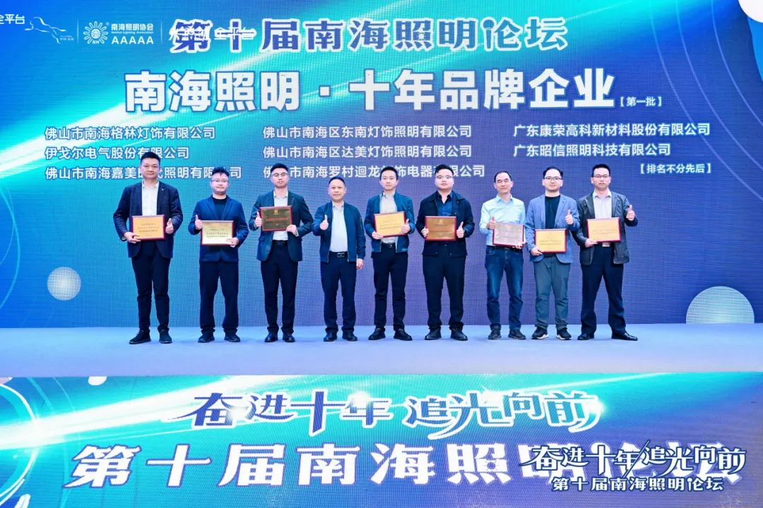 十周年,实奋斗!在过去的十年里,迴龙灯饰与南海照明协会并肩前行,各自在各自的领域中熠熠生辉,为照明行业的发展贡献了巨大的力量。此次,迴龙灯饰在“第十届南海照明论坛”上大放异彩,荣获多项荣誉。